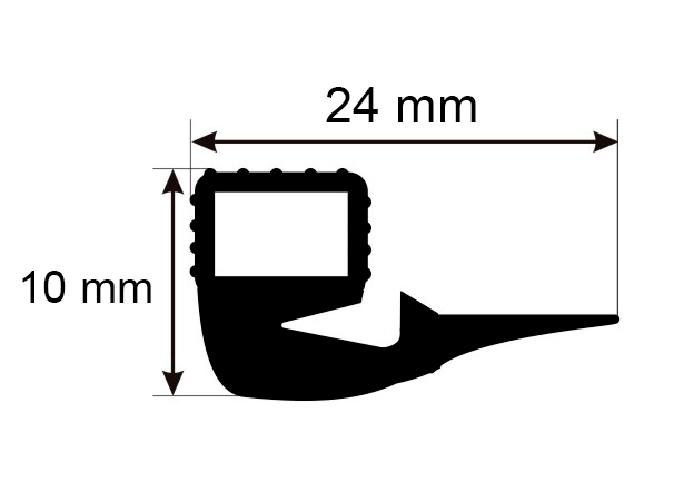 Weatherstrip for bodywork and navigation, mosquito net P-profile type, in EPDM material.
